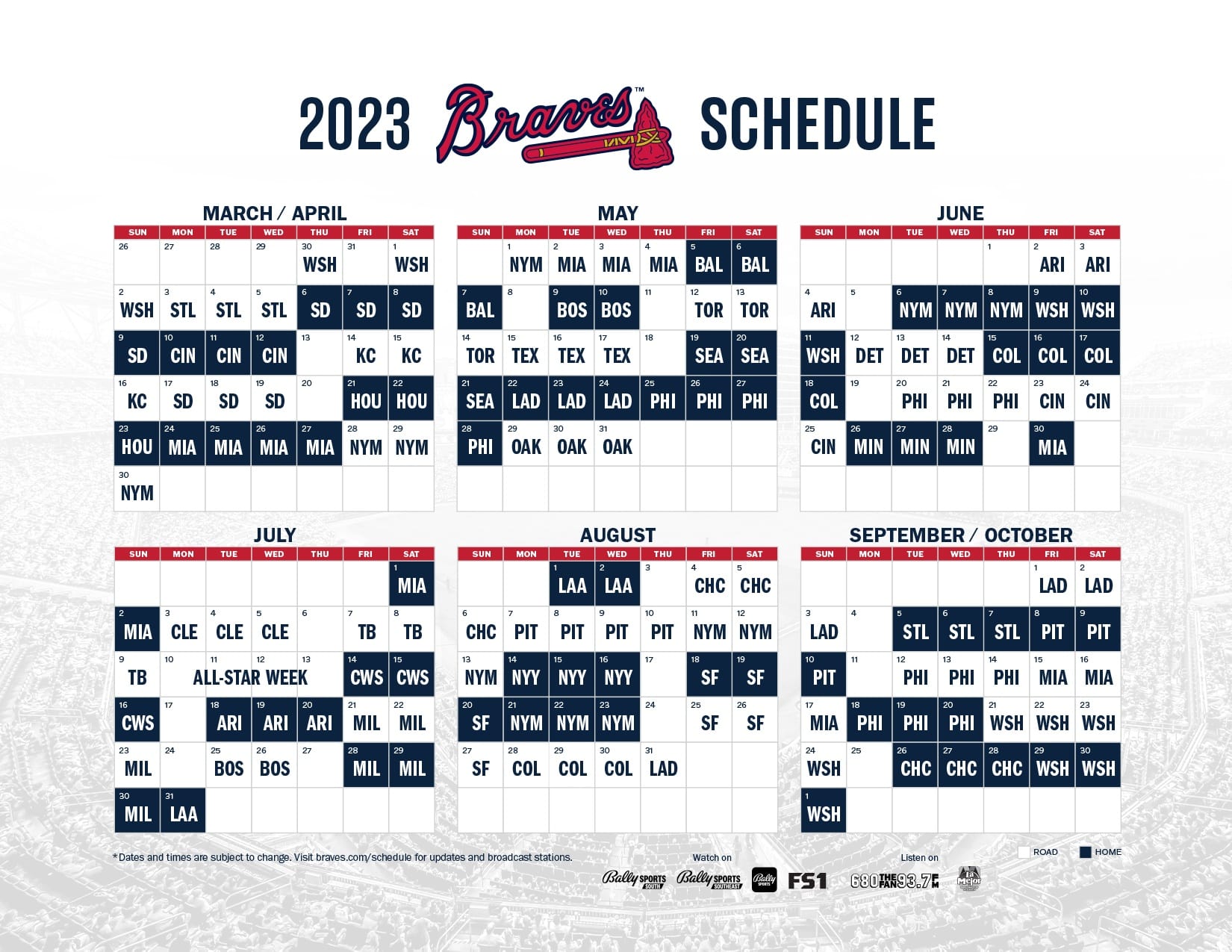 Updated today at 5:20 am utc. Get ready to plan your season and mark your calendars with this ultimate game lineup that will undoubtedly leave you. Browse the complete schedule of all atlanta braves games this season. On this week’s episode of future projection, ben and carlos discuss the exciting crop of mets prospects, complex league names to watch &.