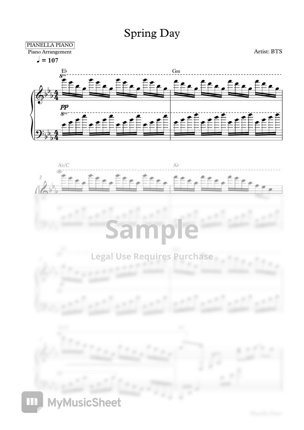 BTS Spring Day (Piano Sheet) Sheets by Pianella Piano
