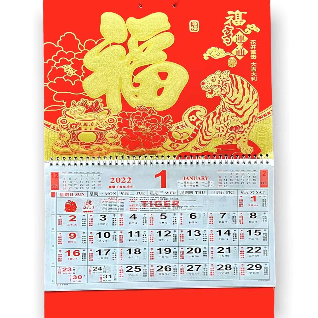 2022 Medium Rectangle Red/Gold Chinese Lucky Calendar Perfect Gift