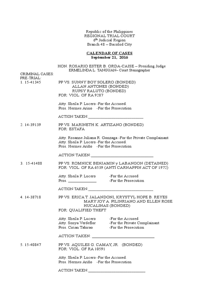 Calendar of Cases PDF Prosecutor Criminal Justice