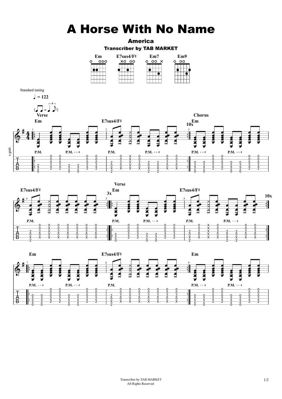 Horse With No Name Free Guitar Tab by Jeffrey Thomas