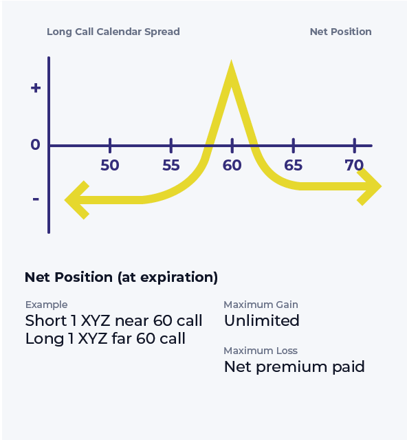 Learn how to create and manage a long calendar spread with calls, a strategy that profits from neutral or directional stock price action near the. This strategy involves buying a longer. Learn how to use a long call calendar spread to combine a bullish and a bearish outlook on a stock. A long call calendar spread involves buying and selling.