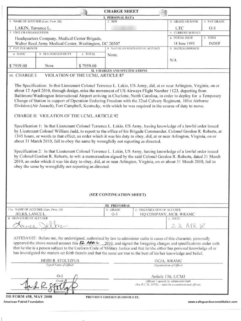 LTC LAKIN CHARGED Chargesheet Apf14Chargesheet PDF Defense