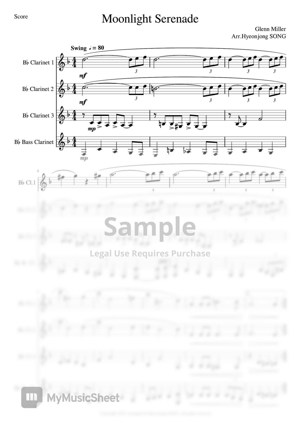 Moonlight Serenade Clarinet Sheet Music - Ensemble for clarinet choir with rhythm section accompaniment. Ensemble piece for clarinet choir with rhythm section accompaniment.