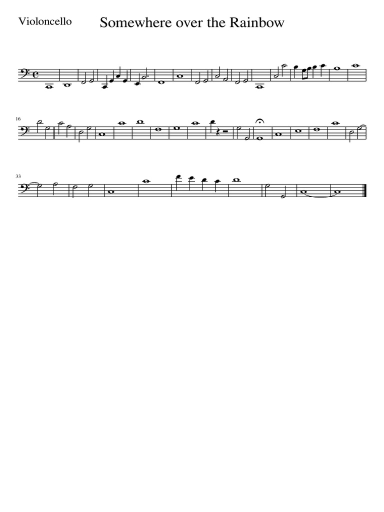This is a simple transcription of somewhere over the rainbow in the easy key of c for cello